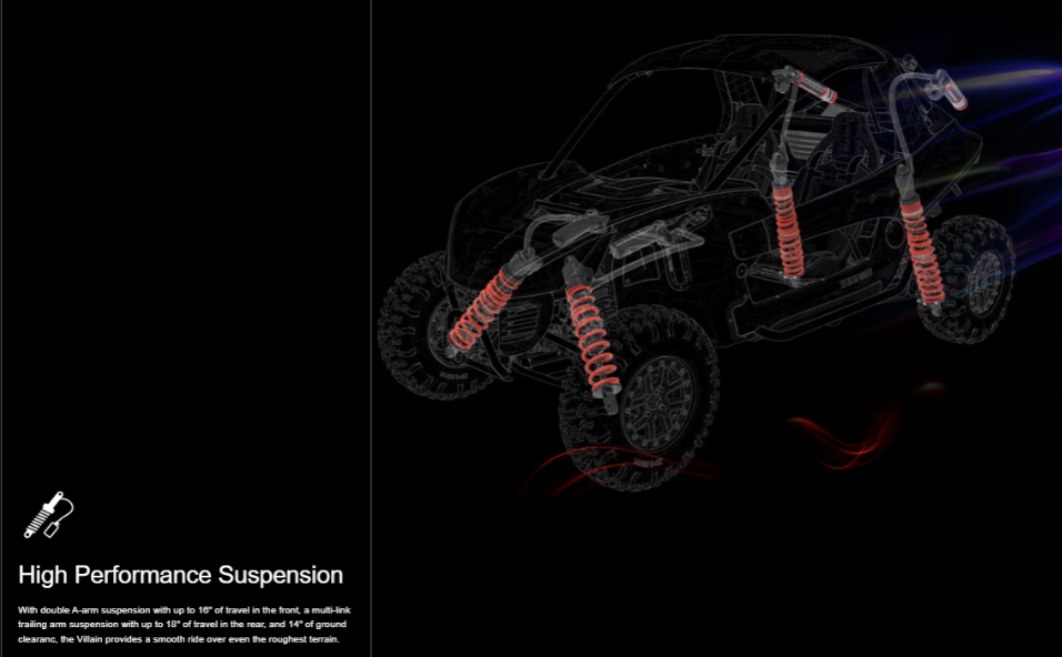 Engineered and assembled in McKinney, Texas, the Segway Villain SX10 WP Sport Side-by-Side (SxS) is a premium off-road titan designed to dominate rugged terrain with unmatched stability. Powered by a ferocious 1000cc 4-stroke parallel-twin DOHC engine delivering 105 horsepower and 65 ft-lbs of torque, it achieves speeds up to 60 mph with seamless 2WD/4WD switching and front/rear differential locks. Its commanding 72-inch width, 15-inch ground clearance, and advanced suspension (16-inch front dual A-arm with stabilizer bar, 18-inch rear multi-link trailing arm) ensure superior traction and comfort on extreme trails. The Smart Commanding System (SCS) with a standard 10.4-inch touchscreen and Smart Moving App provides AirLock Bluetooth/cellular unlocking, real-time telemetry (speed, torque, roll/pitch), and customizable EPS settings (standard, comfort, sport). With a 10.6-gallon fuel tank, 4,500-lb winch, CST Stag 8-ply tires, and a full-beam LED light kit, the SX10 WP delivers relentless performance. Available through Outdoorica, this powerhouse is the ultimate choice for professional off-roaders and thrill-seekers. Contact Outdoorica to schedule a test drive or explore financing options.